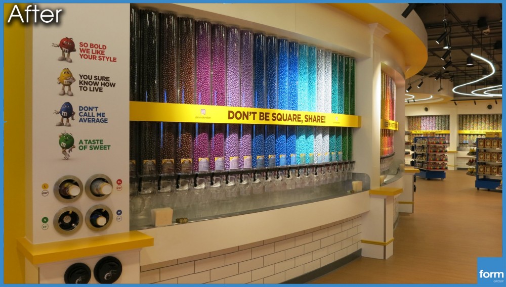 We were asked by our client to manufacture and install the new Chocolate Wall – which is the largest candy wall in the world – at M&M’s World in Leicester Square, London. Like all of projects we carried out the same high-quality standard from start to finish.